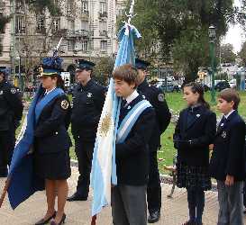 En el barrio de Recoleta, más precisamente en la recientemente remodelada Plaza Emilio Mitre, el acto organizado por la Comisaría 19 comenzó a las 10 de la mañana. Los vecinos, bien abrigados, entonaron emocionados las estrofas del Himno Nacional Argentino, con los acordes de la banda de la policía.