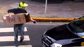 Al otro se lo notaba muy mareado y le costaba bastante mantener el equilibrio, sin embargo se las ingeniaba para esconderse en una caja de cartón y acostado en el piso asustaba a los distraídos transeúntes.