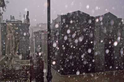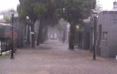 cementerio de La Recoleta bajo una torrencial lluvia, no faltaron los truenos y relámpagos